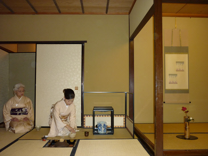 ご招待客は、片山宗紗家元の水の流れの如く自然なお手前による薄茶のもてなしを楽しみました。