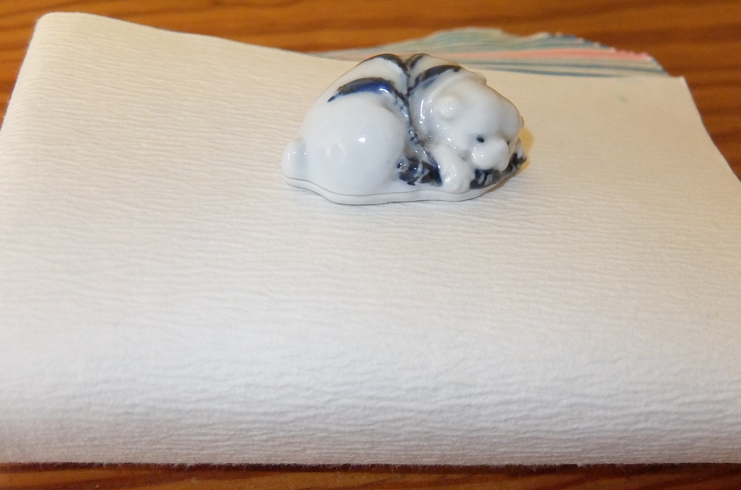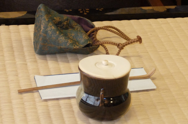 香合:「仔犬」青華磁 三浦 竹泉 茶入:膳所焼 耳付鮟鱇型 十四代淡々斎今日庵 極