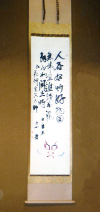 11月8日の京都伏見稲荷の鞴祭りにこの掛軸が使われることから11月の茶会で良く使われる。初代会長片山宗照が法隆寺で求めたもの。
